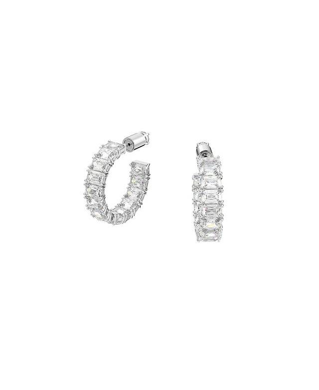 Crystal C-Shape Hoop Earrings in 10k Yellow Gold