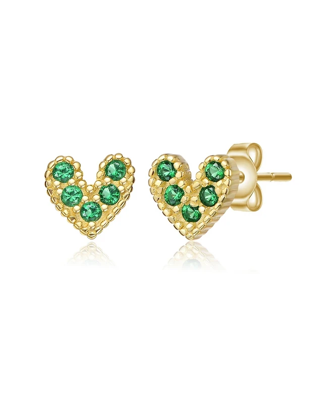 Kids 14K Gold Plated with Colored Cubic Zirconia Accents Heart Stud Earrigns
