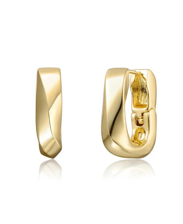 Geometric Rectangle Mini Hoop Earrings White Gold Plated or 14K