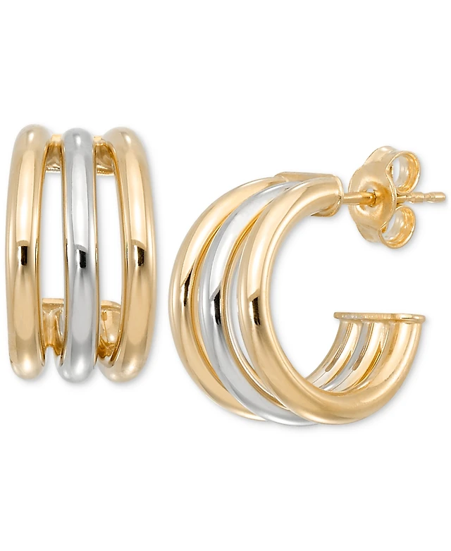 Polished & Diamond Cut Double-Row Oval Bypass Hoop Earrings in 14k Yellow & White Gold