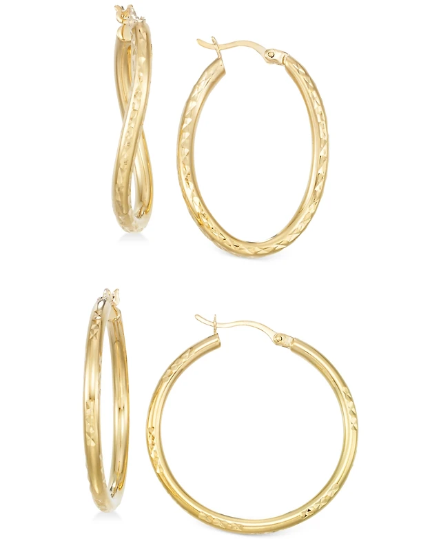 Textured Hoop Earrings In 10k Gold 30mm 70mm. Made In Italy