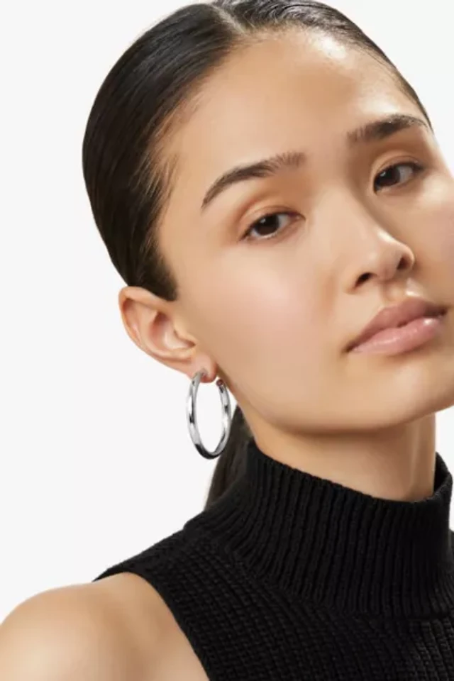 1/2 CT. T.w. Lab-Grown Diamond Triple Row Hoop Earrings in 10K White Gold (F/Vs2)
