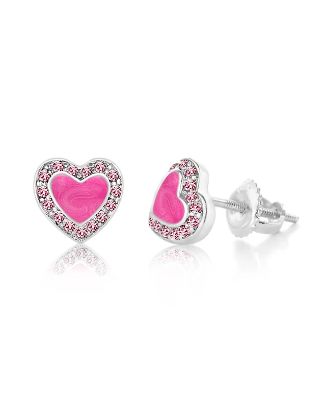 Chanteur/Girl/Heart Enamel Crystal White Gold Palladium Plating Screwstud Earring