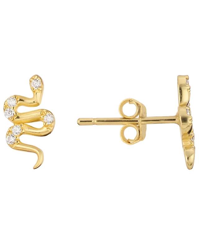 Cubic Zirconia Solitaire Screw Back Stud Earrings in 14k Gold