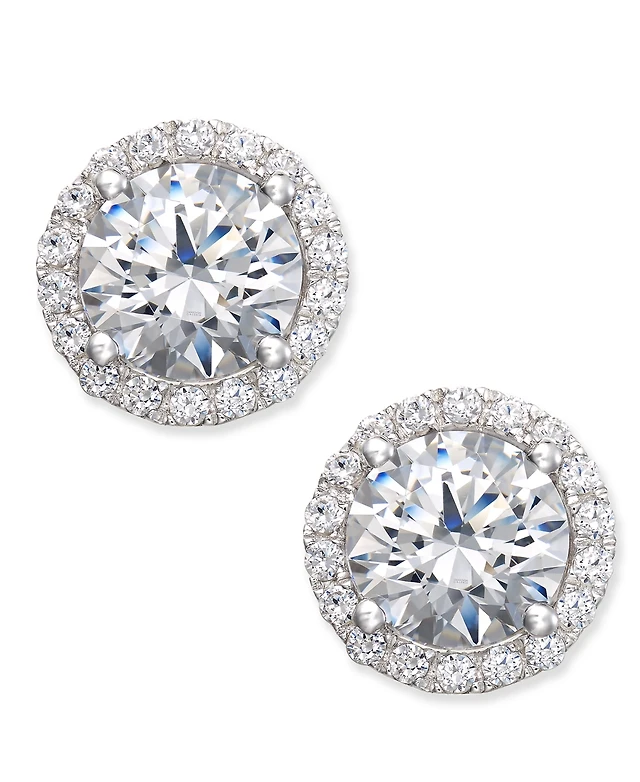 Cubic Zirconia Halo Stud Earrings in 14k Yellow Gold over Sterling Silver