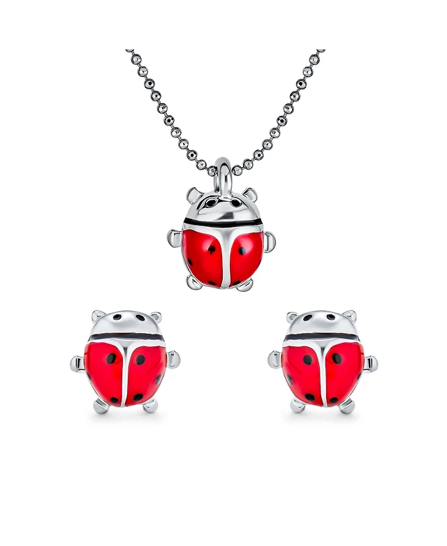 Bling Jewelry Small Red Enamel Ladybug Pendant Necklace and Stud Earrings Set Gold Tone