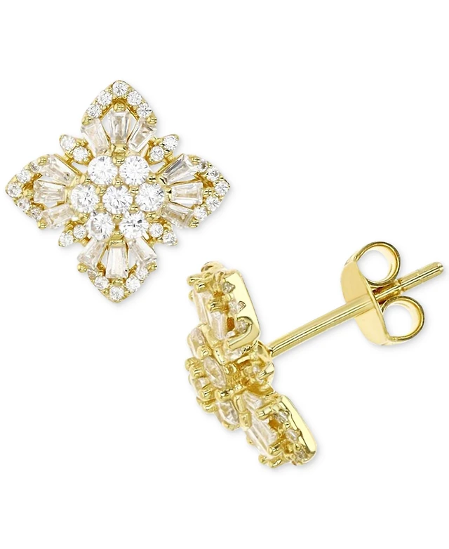 14k Gold Plated Sterling Silver with Cubic Zirconia Clusters Butterfly Stud Earrings