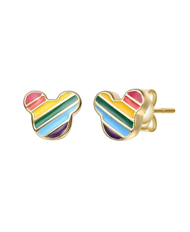 GiGiGirl 14K Gold Plated with Multi Color Enamel Mickey Mouse Rainbow Stud Earrings For Kids