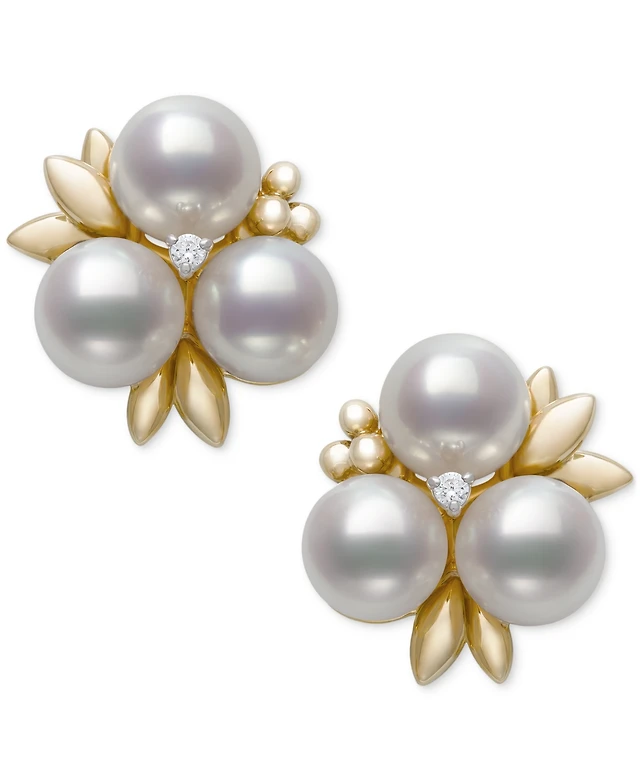 Child's 3.0mm Freshwater Cultured Pearl, Iridescent Cubic Zirconia and Ball Three Pair Stud Earrings Set in 14K Gold