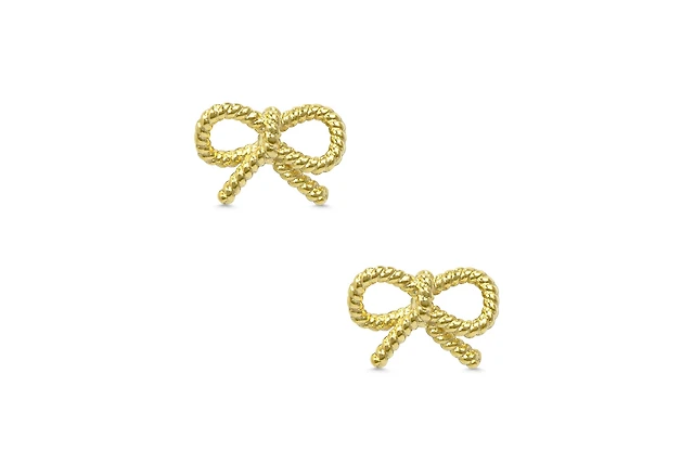 GiGiGirl Sterling Silver 14K Gold Plated White Enamel & Pink Bow Tie Bunny Rabbit Stud Earrings