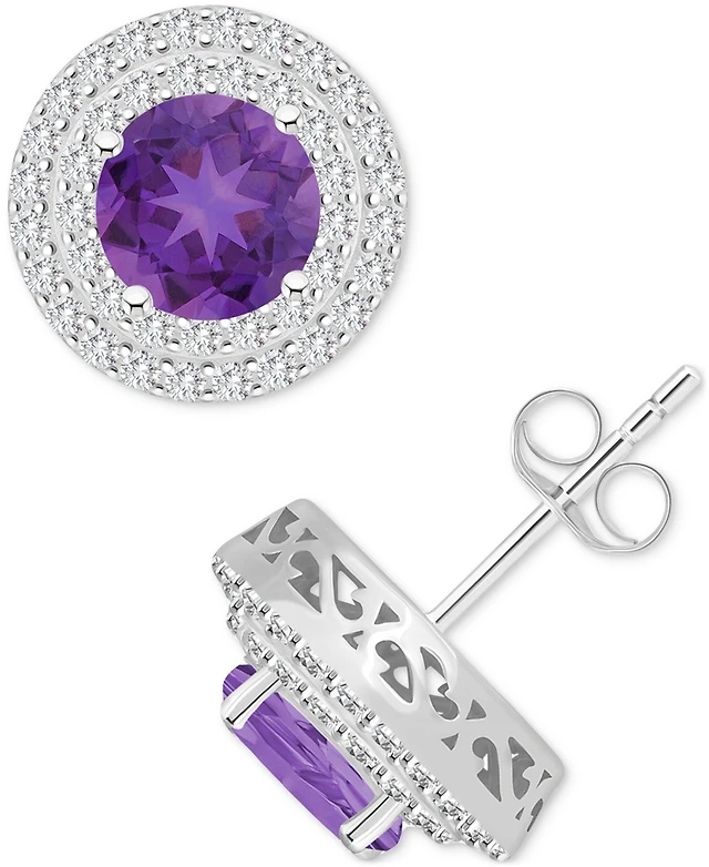 Macy's Garnet (1-1/2 ct. t.w.) and Diamond (1/5 ct. t.w.) Halo Studs in Sterling Silver