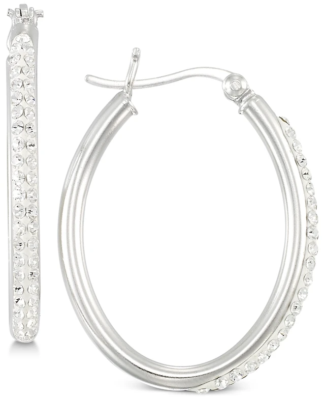 Fine Crystal 6mm Drop Hoop Earrings in Sterling Silver