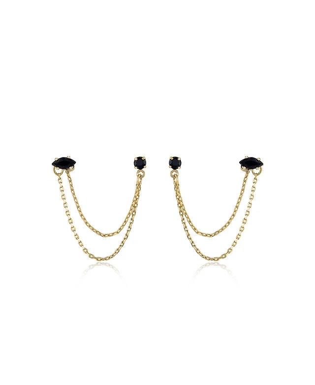 Bling Jewelry Eye lash Cz Accent Evil Eye Double Pierced Cartilage Ear Lobe Helix Chain Ball Ear Stud Earrings Body Piercing Sterling Silver