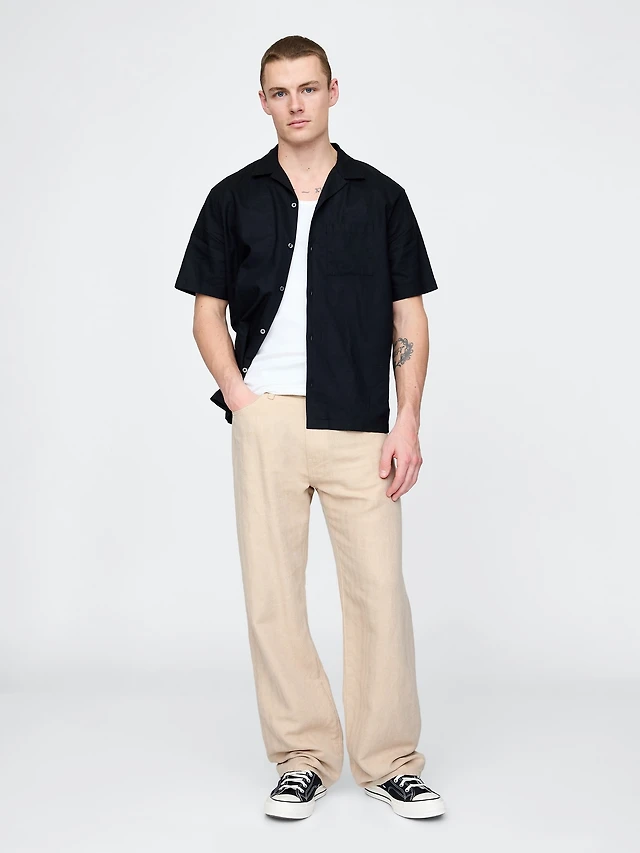 Pilcro Linen-Blend Crop Wide-Leg Chino Pants