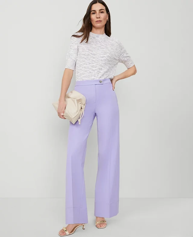 Petite LOFT Versa Seasonless Stretch Double Pleat Taper Pants Heather