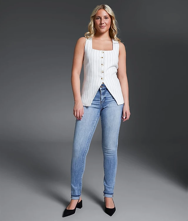 LOFT Versa Pintucked Ponte Flare Pants Pinstripe