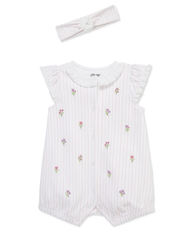 Little Me Baby Girls' Knit Floral Romper & Headband, 2-Piece Set