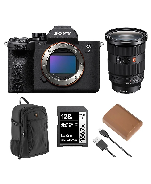 Sony Alpha a7 Iv Mirrorless Camera with Fe 24-70mm f/2.8 Gm Ii Lens, Bundle with 128GB Memory Card, Backpack, Np-FZ100 Battery