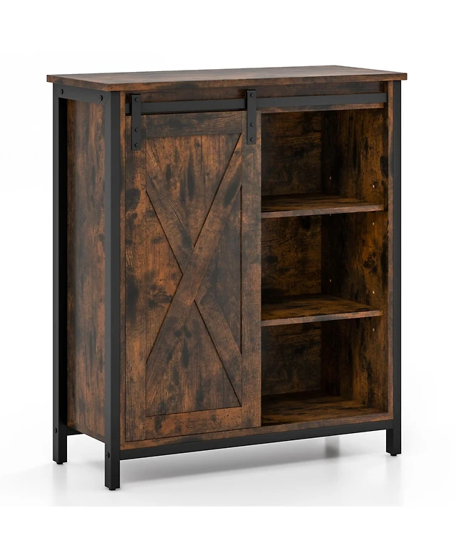 Ironck Shoe Storage Cabinet with 2 Flip Drawers and Barn Door, White/Walnut
