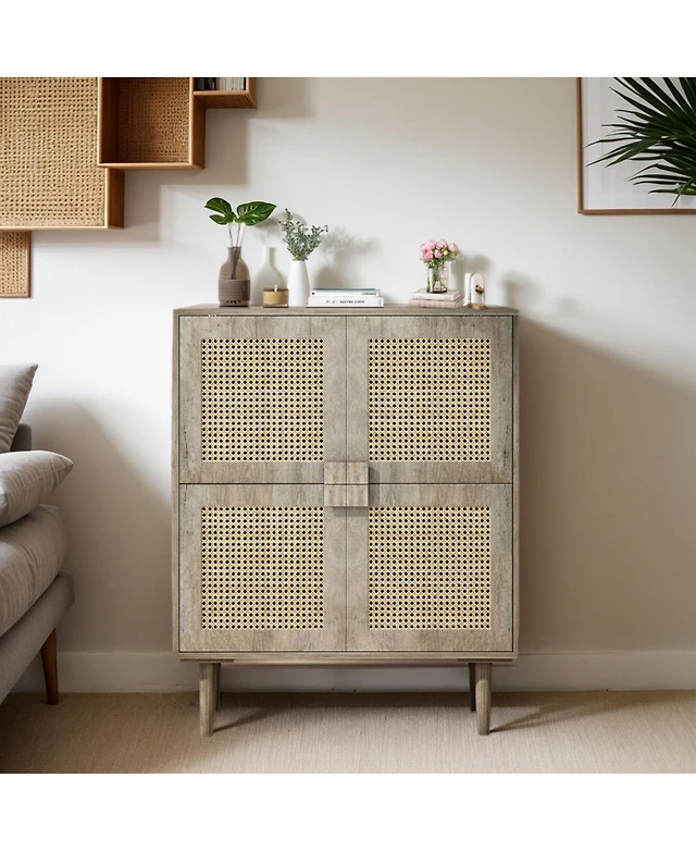 62.20" Elegant and Functional 4-Door Rattan Decorative Storage Cabinet, for Bedroom, Living Room, Office, Easy Assembly(Same Sku:W757133282)