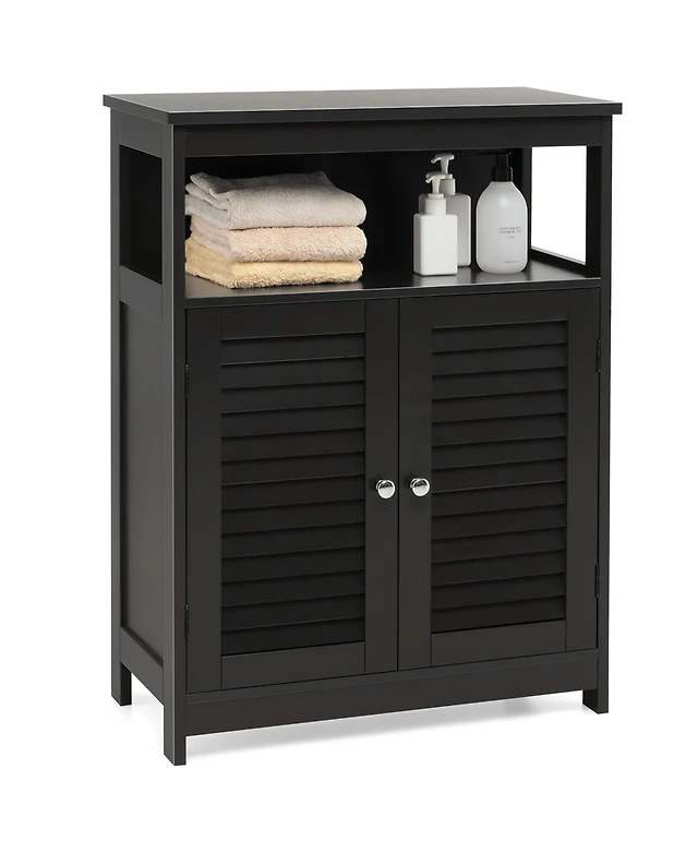Gymax Bathroom Floor Cabinet Wooden Storage Organizer w/Drawer Doors Espresso
