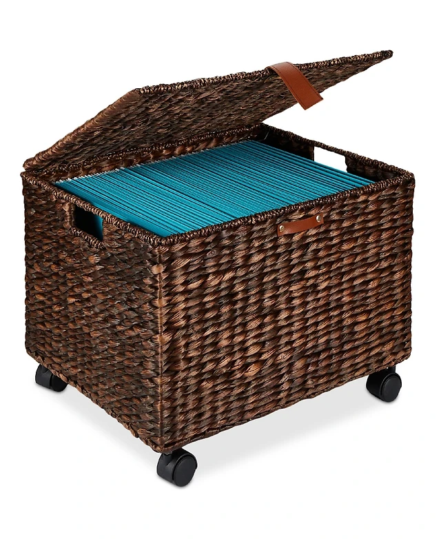Casafield Rolling Filing Cabinet, Water Hyacinth Hanging File Folder Organizer, Home Office Storage