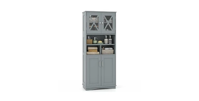 Homcom Tall Bathroom Storage Cabinet with Rat Doors,