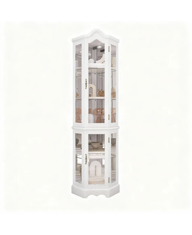 Streamdale Furniture Corner Curio Cabinet with Adjustable Glass Shelves and Mirrored