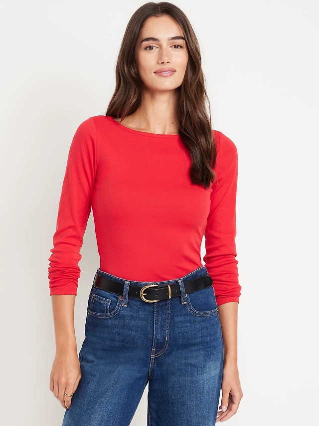 Snug Long-Sleeve Boat-Neck T-Shirt