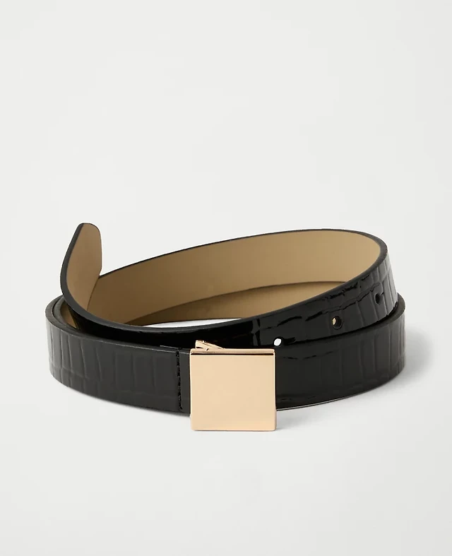 Ann Taylor Croco Patent Leather Belt Black Women's