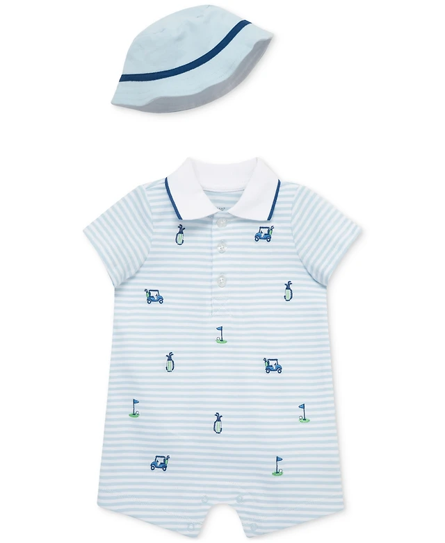 Little Me Baby Boys 2-Pc. Embroidered Cotton Romper & Bucket Hat Set