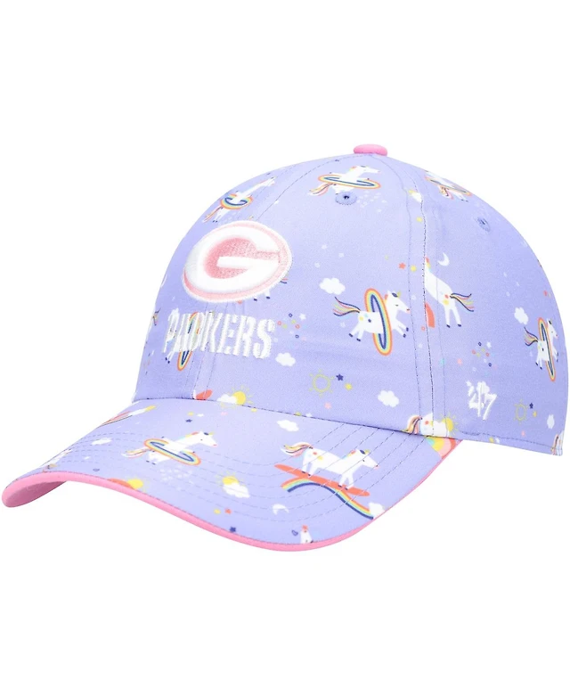 Preschool Girls '47 Purple Green Bay Packers Logo Unicorn Clean Up Adjustable Hat