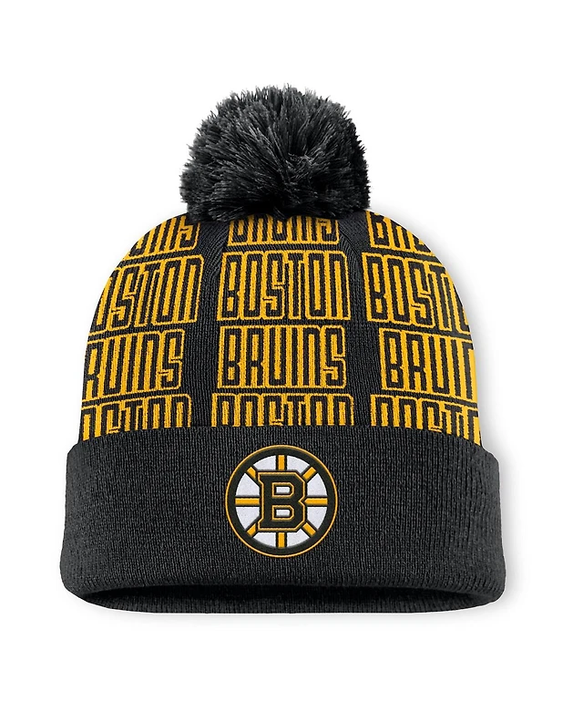 Fanatics Men's Black/Gold Boston Bruins Fundamental Empty Net Cuffed Knit Hat with Pom