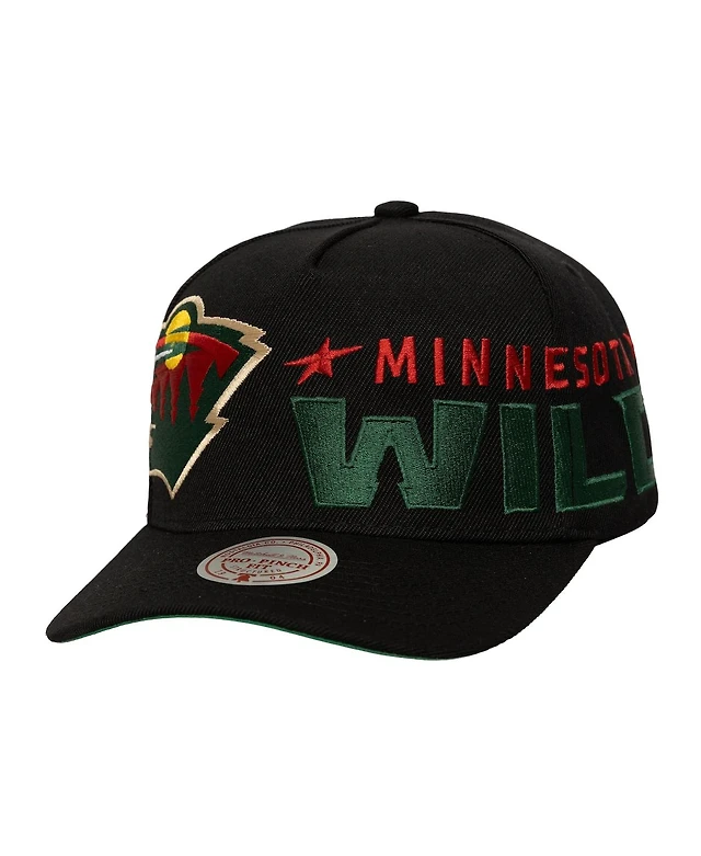 Mitchell & Ness Men's Black Minnesota Wild Busted Logo Wordmark Wrap-Around Pro Pinch Adjustable Hat