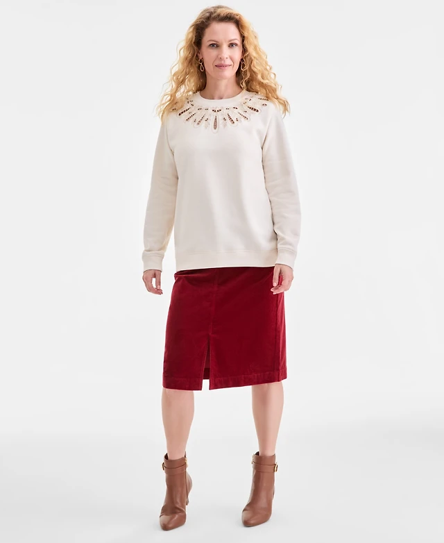 Style & Co Women's Embroidery Crewneck Sweatshirt, Macy's Exclusive