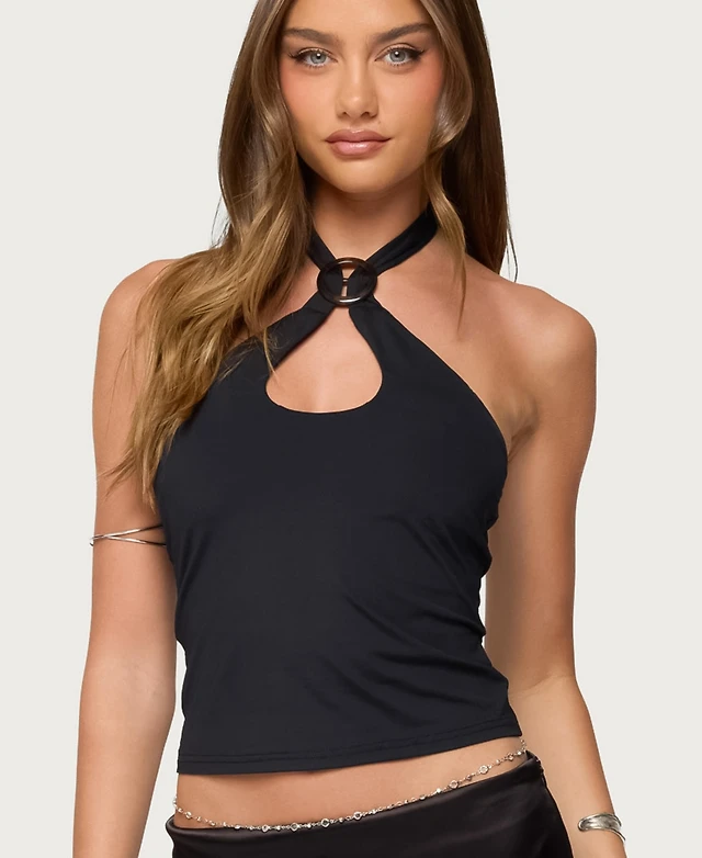 Edikted Women's Varley Buckle Cutout Faux Leather Top