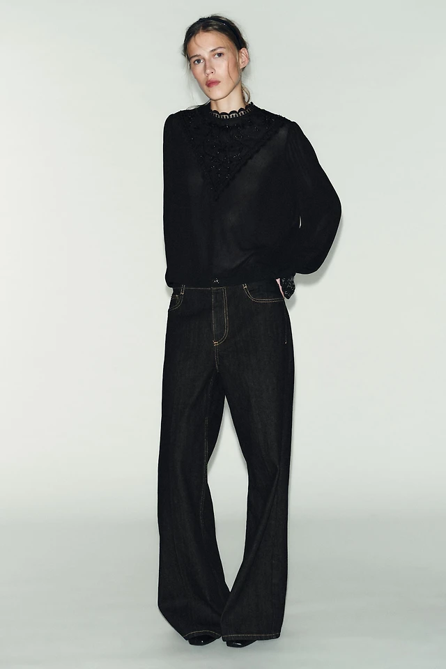 DRAPED EMBROIDERED BEADED TULLE TOP