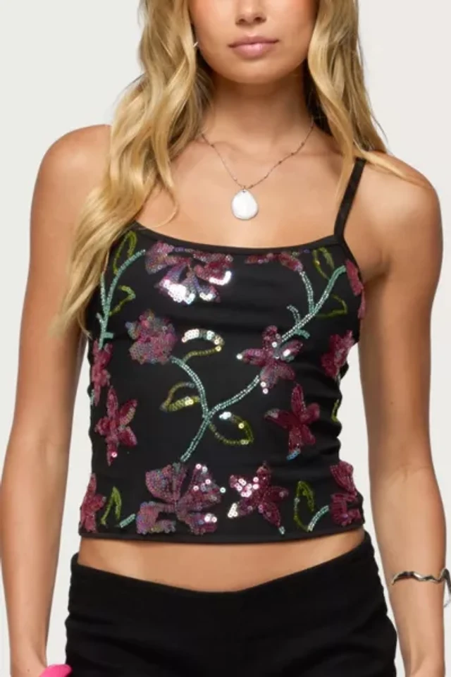 Edikted Embroidered Bead & Sequin Halter Top