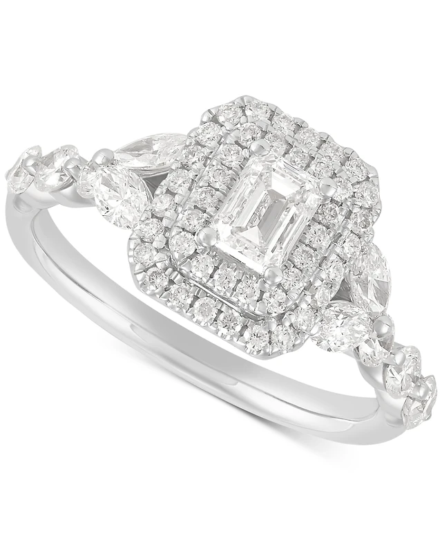 Previously Owned Neil Lane Diamond Engagement Ring 1-1/2 ct tw Emerald & Round-cut Diamonds 14K White Gold Size 7.5