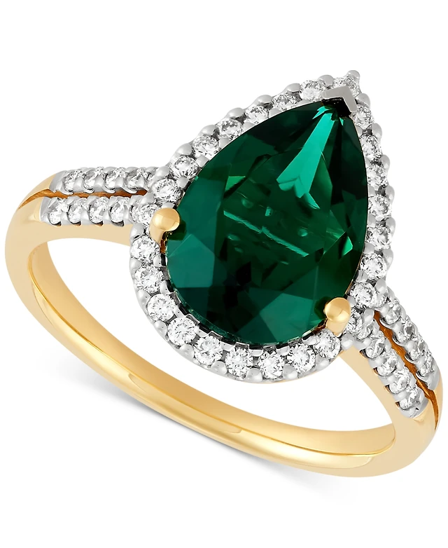 Lab-Grown Emerald (1/2 ct. t.w.) & White Sapphire (1/10 Pear Halo V Ring 14k Gold-Plated Sterling Silver (Also Additional Ge