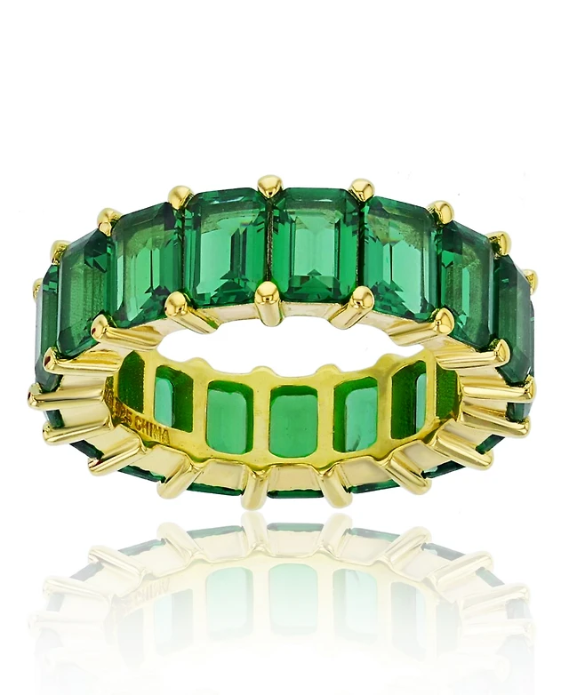 Rainbow Colored Emerald Cut Cubic Zirconia Eternity Band 14k Yellow Gold Plated Sterling Silver