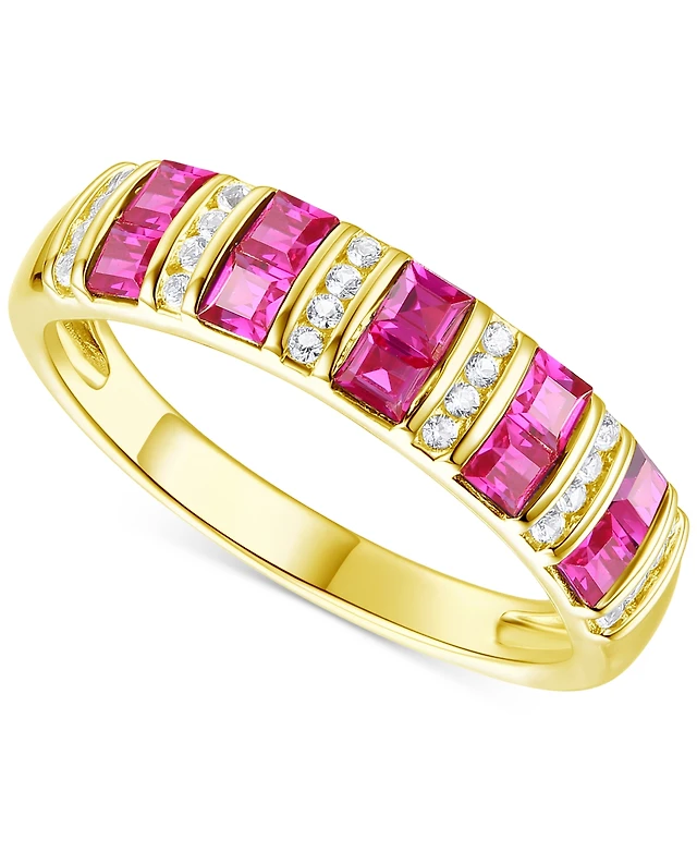 Lab-Created Ruby & White Lab-Created Sapphire Rope Ring Sterling SIlver