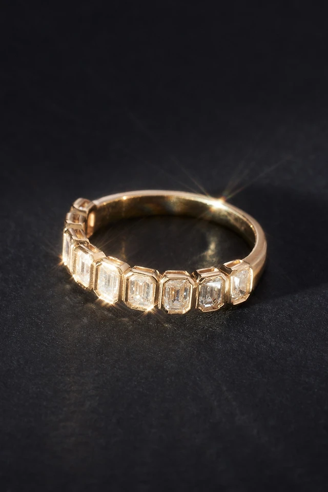 Emerald-Cut Emerald & Diamond Chain RIng 1/15 ct tw 10K Yellow Gold
