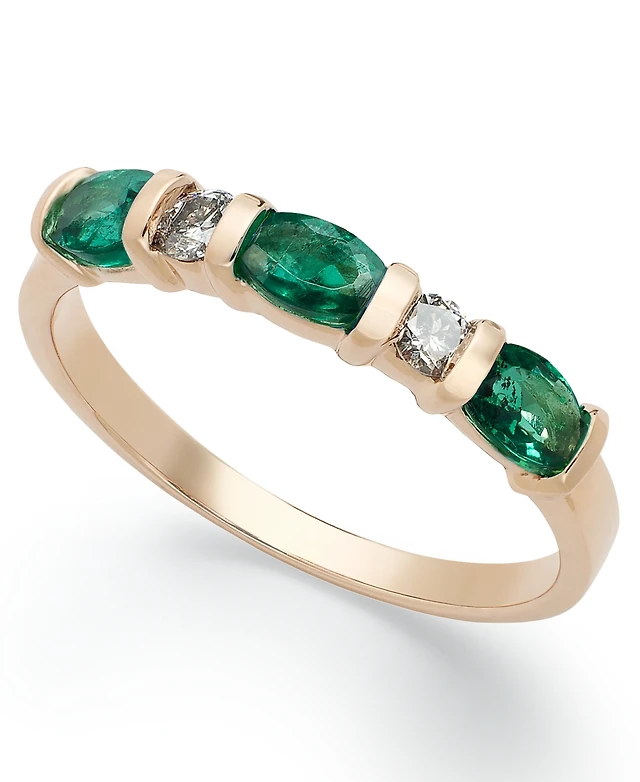 Macy's Three Oval Emerald (1/2 ct. t.w.) Ring in 14K Gold-Plated Over Sterling Silver