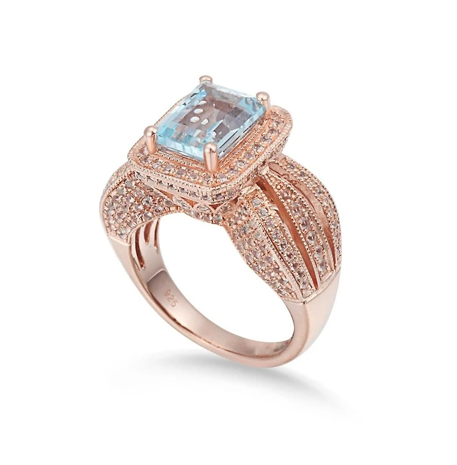 Suzy Levian Two-Tone Sterling Silver Emerald Cut Center Topaz Cocktail Milano Ring