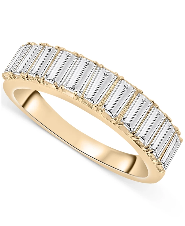Baguette-Cut Lab-Created Emerald Band in Sterling Silver with Yellow Rhodium