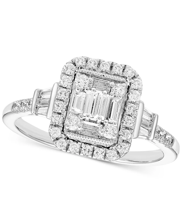 Now + Forever Diamond Engagement Ring 1 ct tw Emerald, Round & Baguette-cut 14K White Gold