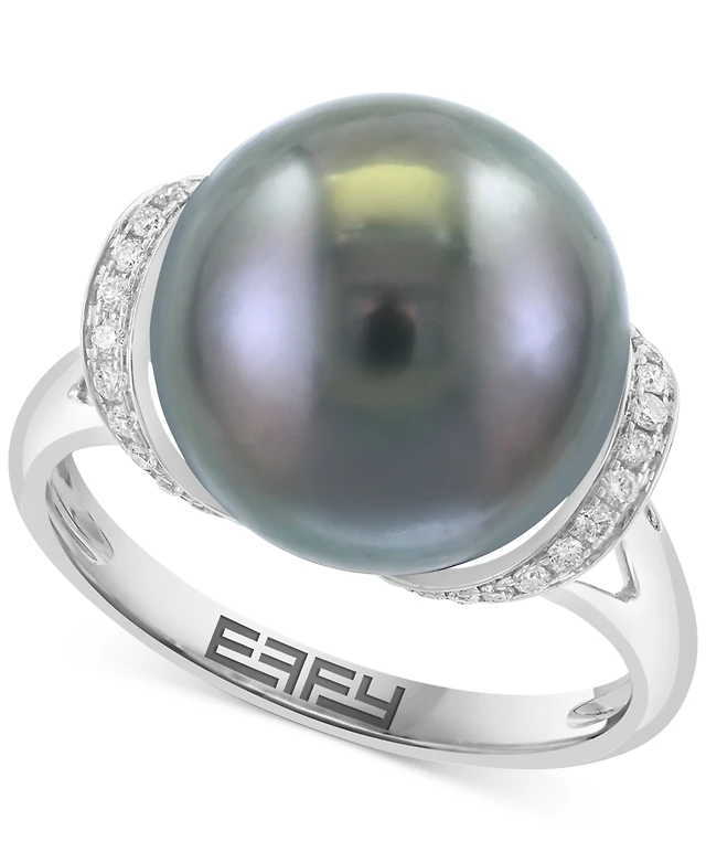 Effy Cultured Black Tahitian Pearl (13mm) & Diamond (1/8 ct. t.w.) Ring in 14k White Gold