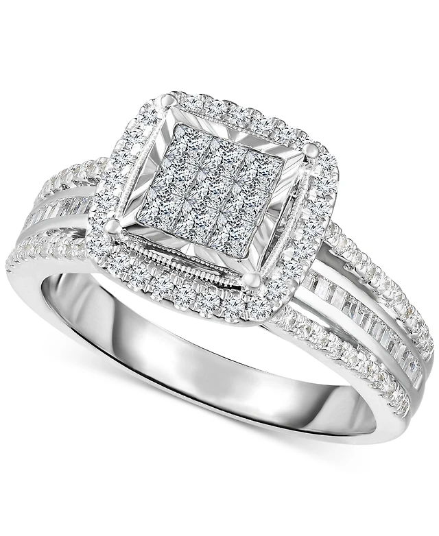 Diamond Princess & Round Halo Cluster Split Shank Ring (5/8 ct. t.w.) in 14k White Gold