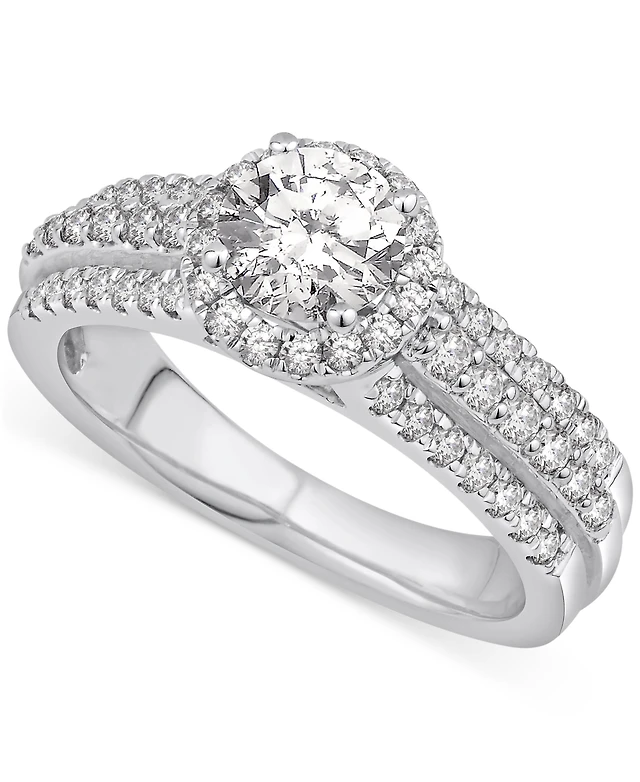 Diamond Double Halo Multi-Row Engagement Ring (1-1/2 ct. t.w.) in 14k White Gold